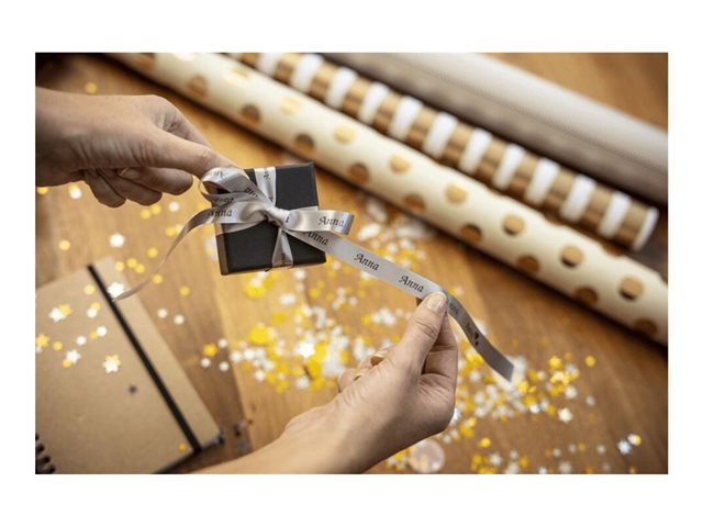 sort på sølv - Rulle (1,2 cm x 4 m) 1 kassette(r) båndtape - for Brother PT-D210, D600, H110, H200; P-Touch PT-1005, H107, P900; P-Touch Cube Plus PT-P710