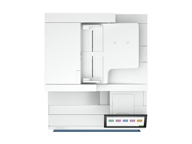 The HP LaserJet Enterprise MFP 8601dn is a multifunctional printer designed for efficiency and productivity in a busy office environment. This printer features fast black and white printing with a maximum resolution of 1200 x 1200 DPI, delivering crisp and clear documents at a speed of 70 pages per minute. With a monthly duty cycle of up to 250,000 pages, it is equipped to handle high-volume printing needs with ease. The 10.1-inch touch display provides an intuitive interface for easy navigation of functions, including printing, scanning, and copying, along with mobile printing capabilities such as Apple AirPrint and Mopria Print Service. This model supports automatic duplexing, allowing for efficient two-sided printing and copying, saving both time and paper. The robust document feeder can hold up to 200 sheets, facilitating continuous operation without frequent interruptions. With substantial media handling capabilities, it supports a variety of media types and custom sizes including envelopes, cardstock, and transparencies, making it versatile for different printing tasks. Featuring advanced security protocols and the ability to print directly from USB flash drives, the HP LaserJet Enterprise MFP 8601dn ensures a seamless and secure printing experience.