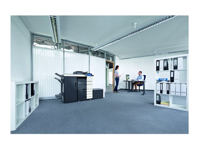 Produktbeskrivelse Konica Minolta bizhub 554e - multifunktionsprinter - S/H Enhedstype Multifunktionsprinter Udskrivningsteknologi Laser (monokrom) Månedlig driftscyklus (maks.) 150000 sider Anbefalet månedlig volumen 30000 sider Maksimal kopieringshastighed Op til 55 spm Maksimal kopieringsopløsning Op til 600 x 600 dpi Maksimal udskrivningshastighed Op til 55 spm Maksimal udskrivningsopløsning Op til 1800 x 600 dpi Scanning 600 x 600 dpi Billedskærm 9" Originalstørrelse A5 (148 x 210 mm) (minimum) - A3 (297 x 420 mm) (maks.) Originaltype Ark Dokumentføder kapacitet 100 ark Mediestørrelse A6 (105 x 148 mm) (minimum) - SRA3 (320 x 450 mm) (maks.) Medietype Almindeligt papir Standard mediekapacitet 1150 ark Maksimal mediekapacitet 6650 ark Bypass-feeder kapacitet 150 ark Udbakkekapacitet 250 ark Automatisk duplikering Ja (kopiering) Ja (udskriver) Forbindelse tilgængelig Ja Interface USB 2.0, Gigabit LAN, USB 2.0 vært AirPrint-aktiveret Ja Kontormaskineegenskaber Scan til e-mail, scan til FTP, scan til SMB, scan til hukommelseskort Effekt AC 230 V (50/60Hz) Dimensioner (B x D x H) 61.5 cm x 68.5 cm x 92.1 cm Vægt 93 kg -