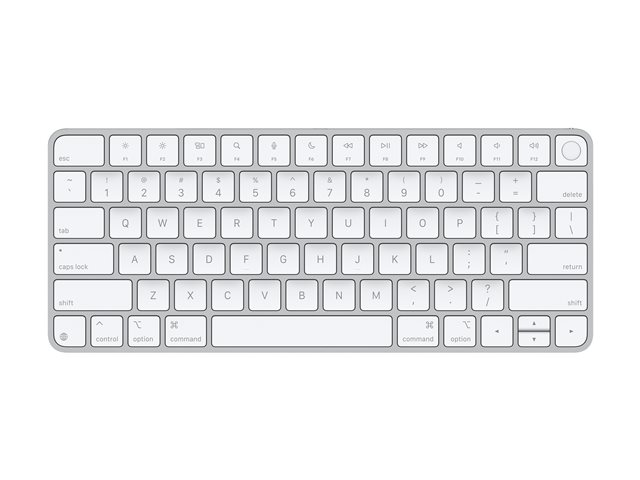 Magic Keyboard med Touch ID giver dig en utroligt behagelig og præcis skriveoplevelse. Det er også trådløst og genopladeligt med et indbygget batteri, der holder utroligt længe, så det kan holde dit tastatur kørende i omkring en måned eller mere, før det skal oplades. Det danner automatisk par med din Mac, så du kan komme i gang med det samme. Og der medfølger et vævet USB-C til Lightning-kabel, som giver dig mulighed for at danne par og oplade via en USB-C-port på din Mac.