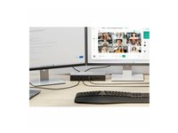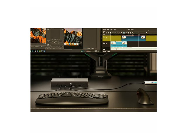 The Kensington SD5000T5 EQ docking station offers versatile connectivity options, making it an essential solution for modern workspaces. With multiple video interfaces including three Thunderbolt 5 ports and supporting resolutions up to 4K at a refresh rate of 144 Hz, this docking station allows for dual, single, or even triple display setups, enhancing productivity and visual experience. Its ability to deliver up to 140 W of power ensures that devices stay charged while connected, reducing clutter and increasing efficiency. Constructed from 100% recycled aluminum, the SD5000T5 EQ is functional and environmentally conscious. The zero footprint mounting feature allows for seamless integration into any workspace without taking up unnecessary space. With Plug-and-Play compatibility and various data link protocols including Gigabit Ethernet and 2.5 Gigabit Ethernet, this docking station meets diverse connectivity needs, providing a reliable docking solution for users.