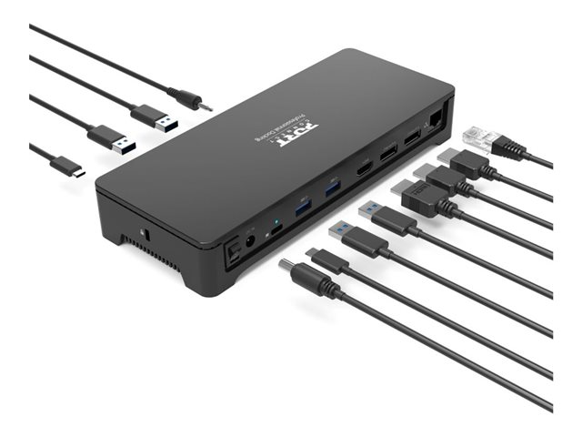 Dockingstationen er udstyret med flere tilslutningsmuligheder, herunder HDMI, DisplayPort og Ethernet-tilslutninger. Den har også et kombineret hovedtelefon-/mikrofonstik og understøtter funktioner som Wake on LAN og Preboot Execution Environment (PXE). Sikkerhedsslidsen sikrer, at din opsætning er sikker, mens tænd/sluk-knappen gør betjeningen nem. PORT connect Professional Docking OFFICE giver den alsidighed, der er nødvendig for et professionelt arbejdsområde.
