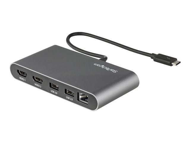 Portable Dual Monitor w/HDMI 4K 60Hz - 2X USB-A Hub (3.2/2.0), GbE - 28cm Cable - TB3 Multiport Adapter - Mac/Windows - Upgraded Version of TB3DKM2HD (TB3DKMHDL) - Dockingstation - Thunderbolt 3 - 2 x HDMI - 1GbE