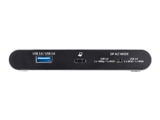 The USB-C video adapter extends your laptop screen to dual DisplayPort displays. Using the DP Alt Mode switch, you can choose between higher display resolution or faster USB speed to meet your needs, for desktop or portable use. Choose between: dual 4K30 (or single 4K60) resolution with USB 2.0 speed, or dual 1080p (or single 4K30) resolution with USB 3.0 speed.