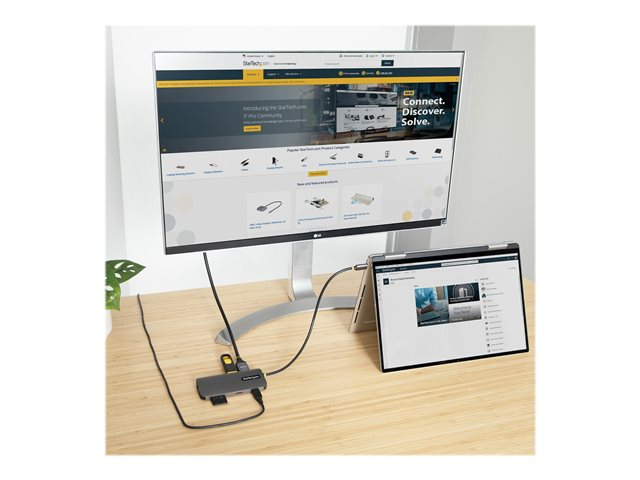 - 3-port 5 Gbps USB-A hub for high-speed data transfer