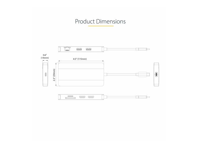 StarTech.com USB C Multiport Adapter, Dual HDMI Video, 4K 60Hz, 2-Port 5Gbps USB-A Hub, 100W Power Delivery Charging, GbE, SD/MicroSD, USB Type-C Mini Travel Dock, 12"/30cm Cable