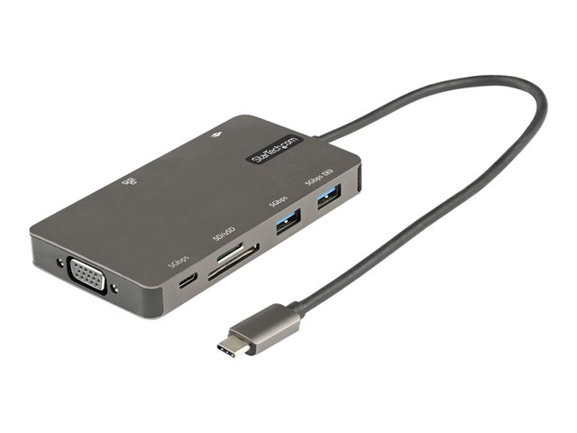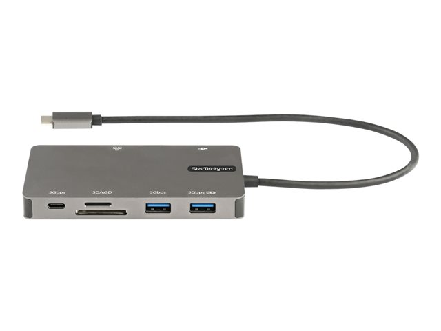 StarTech.com USB C Multiport Adapter, HDMI 4K 30Hz or VGA Travel Dock, 5Gbps USB 3.0 Hub (USB A / USB C Ports), 100W Power Delivery, SD/MicroSD Slot, GbE, 12" (30cm) Long Attached Cable