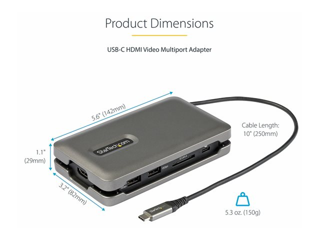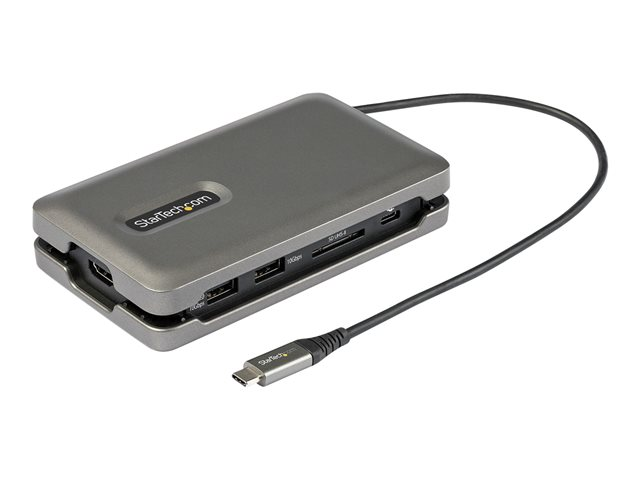 StarTech.com USB C Multiport Adapter, USB C to 4K 60Hz HDMI 2.0, 2-Port 10Gbps USB Hub, 100W Power Delivery Pass-through, GbE, SD/MicroSD, USB Type-C Mini Dock, 10"/25cm Attached Cable