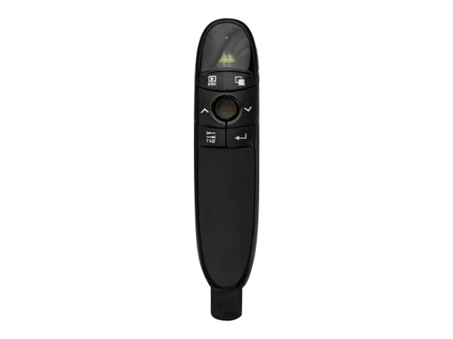 This wireless presentation remote helps you deliver seamless presentations by combining intuitive navigation and a laser pointer in a single compact unit.