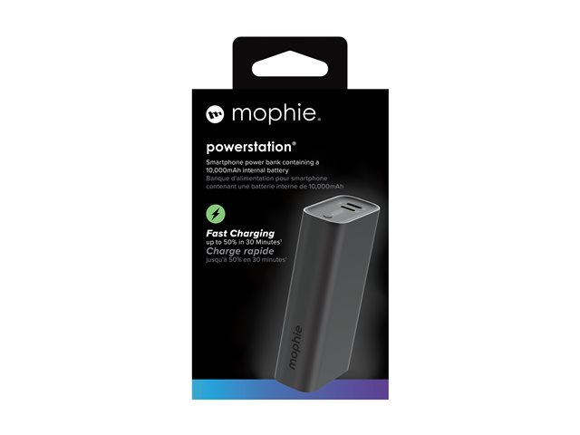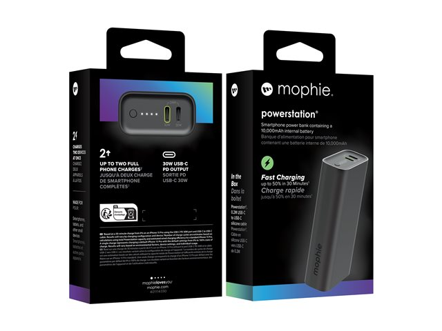 Med sin Power Delivery-hurtigopladningsteknologi kan mophie powerstation levere op til 30 W strøm. Den er udstyret med to udgangsstik, som giver mulighed for samtidig opladning af to enheder. En LED-indikator giver et hurtigt overblik over batteristatus, hvilket gør det nemt at overvåge den resterende strøm. En enkelt 24-polet USB-C-indgang sikrer effektiv genopladning af selve powerbanken.