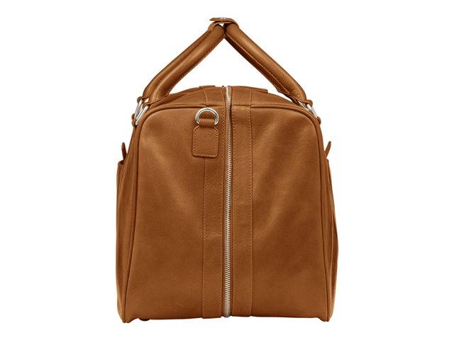 - Double leather carry handles fasten with a press stud tab