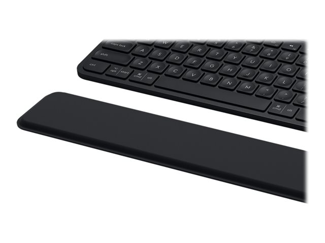 - Fast, men komfortabel håndflade- og håndledsstøtte holder hænderne i en god, afslappet stilling, så du kan skrive komfortabelt i flere timer