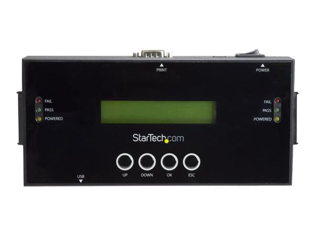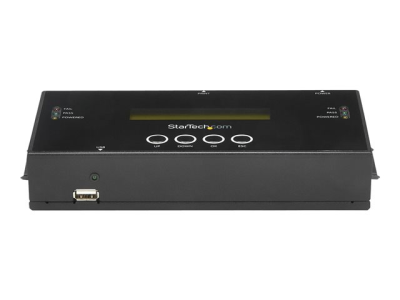 The drive duplicator and eraser provides IT professionals with an easy-to-use solution in an office or server environment. It offers convenient menu navigation buttons and a built-in LCD display that clearly identifies the duplication or erase mode and task status. Since it is OS independent, no software or drivers are required.
