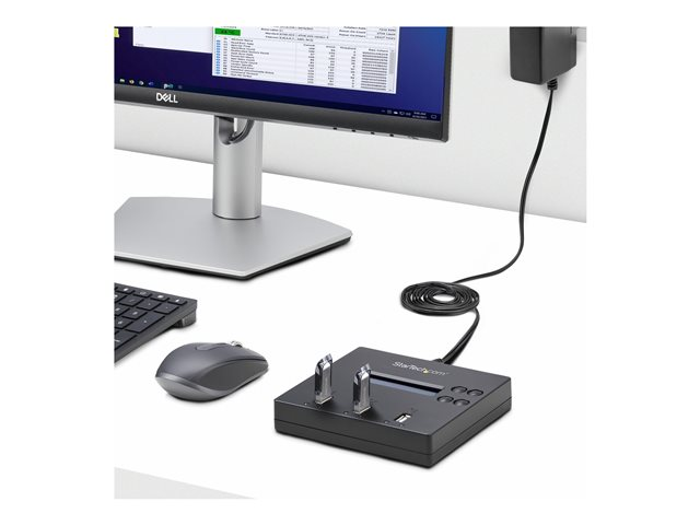 The USB cloner lets you copy up to two drives simultaneously (synchronous duplication) with speeds of up to 1.5GB per minute. It also offers asynchronous duplication which lets you remove and replace a drive while the other drive continues to copy.