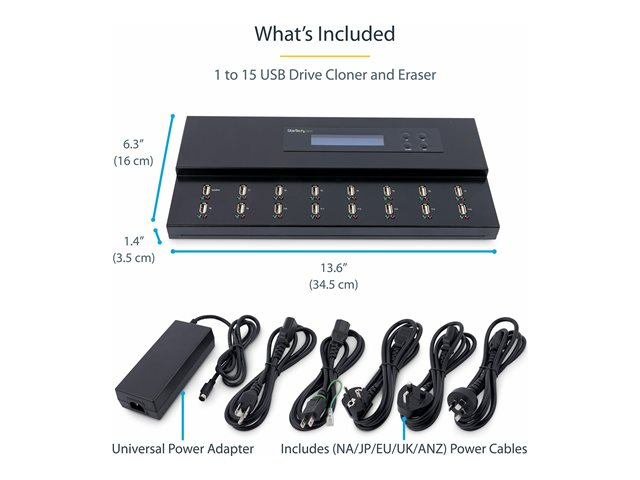 StarTech.com Standalone USB Duplicator - USB Duplicator and Eraser - USB 3.0, 2.0, 1.1 - 1:15 USB Flashdrive - USB Thumb Drive (USBDUPE115) - USB drev duplikator - 15 bays - TAA-kompatibel USBDUPE115
