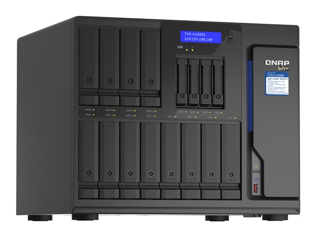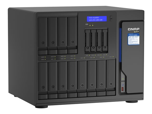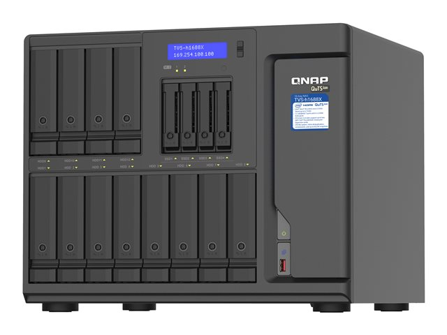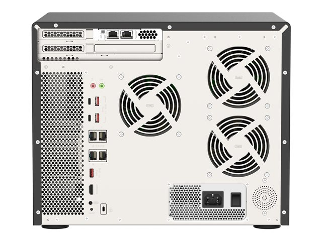 The high-capacity TVS-h1688X features a powerful Intel Xeon W processor and allows for installing two QNAP QXP-T32P Thunderbolt 3 PCIe expansion cards (sold separately) to attain four Thunderbolt 3 ports, making it a perfect match for Thunderbolt -equipped Mac and Windows users for high-speed media collaboration. The built-in 10GbE and 2.5GbE connectivity supports Port Trunking and failover to further satisfy bandwidth and reliability demanding business applications. Running the ZFS-based QuTS hero operating system, the TVS-h1688X supports block-level inline data deduplication and compression, near-limitless snapshots, real-time SnapSync, and read/write cache technologies, helping your business achieve reliable service-level agreement performance, from creative workflows to file server, virtualization server, and efficient file backup and recovery applications.