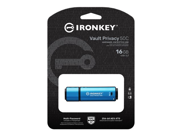 Kingston IronKey Vault Privacy 50C - USB flashdrive - krypteret - 16 GB - USB-C 3.2 Gen 1 - TAA-kompatibel