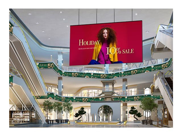 Samsung IE015C-L LED-displayenheden er en alsidig løsning, der er skræddersyet til digital skiltning. Det kompakte design og den robuste konstruktion opfylder kravene til kommerciel brug og sikrer pålidelighed og holdbarhed. Med en opløsning på 384 x 216 og en pixelafstand på 1,56 mm leverer den klare og detaljerede billeder, der er velegnede til forskelligt indhold. Skærmens høje lysstyrke på 600 cd/m2 kombineret med HDR10-kapacitet sikrer levende og dynamiske billeder, der fanger opmærksomheden i alle omgivelser. Derudover sikrer de brede betragtningsvinkler, at indholdet er let at se fra forskellige positioner, hvilket forbedrer seeroplevelsen for et større publikum. Energieffektivitet er et andet kendetegn ved denne model, med et maksimalt strømforbrug på 382 W/m2, hvilket gør den til et økonomisk valg for virksomheder, der ønsker at minimere driftsomkostningerne. Overholdelse af strenge standarder som EMC klasse A og IP30 certificerer desuden dens egnethed til udfordrende miljøer. Uanset om det er til detailhandel, hotelbranchen eller offentlige rum, er Samsung IE015C-L konstrueret til at levere enestående ydeevne og pålidelighed.