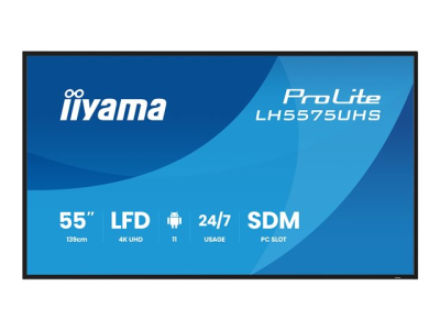 Iiyama ProLite LH5575UHS-B2AG er designet til kommerciel brug og leverer ydeevne i digitale skiltningsapplikationer. Denne 55-tommer LED-bagbelyste LCD-skærm har en 4K UHD-opløsning på 3840 x 2160, hvilket sikrer skarpe billeder i alle miljøer. Dens lysstyrke på 500 cd/m2 og en bred betragtningsvinkel på 178° gør den velegnet til visning af indhold i både stående og liggende tilstand.