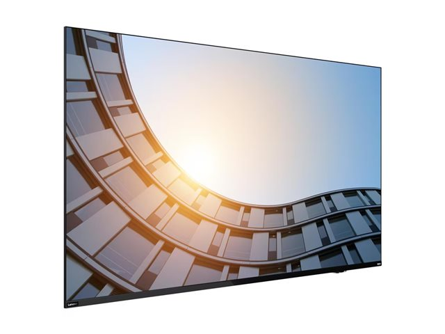 The Lenovo ThinkVision E65 LFD offers a 65-inch LED-backlit LCD flat panel display with a resolution of 3840 x 2160, providing clear and vibrant visuals for any commercial environment. Featuring a brightness of 400 cd/m² and a contrast ratio of 5000:1, this display enhances image quality, making it suitable for interactive communication. The IPS technology delivers wide viewing angles of up to 178° degrees, ensuring that the content remains vivid from any position in the room.