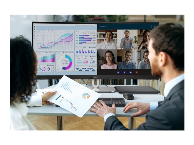 Philips 34B2U6603CH LED-baggrundsbelyst LCD-skærm forbedrer din seeroplevelse med sin 34" ultrabrede skærm og en oprindelig opløsning på 3440 x 1440. Denne skærm leverer skarpe og detaljerede billeder og understøtter et ergonomisk design med højde- og hældningsjusteringer, så du kan finde den perfekte synsvinkel for komfort og produktivitet. Den indbyggede USB-hub forbedrer funktionaliteten og giver praktiske tilslutningsmuligheder til dine enheder. Med WLED-baggrundsbelysningsteknologi tilbyder den energieffektiv ydeevne, hvilket gør den til et passende valg til både professionel og personlig brug. Derudover sikres skærmens holdbarhed af en flad frontramme og en Kensington-sikkerhedsslot, der giver ro i sindet i ethvert miljø.