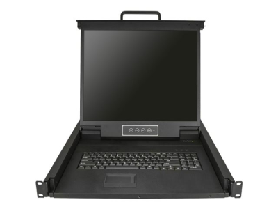 This rackmount KVM console provides complete keyboard, monitor and mouse control for a single server or multiple servers, connected through a separate KVM switch. The console installs into 1U of rack space, offering a space-efficient solution for complete console control.