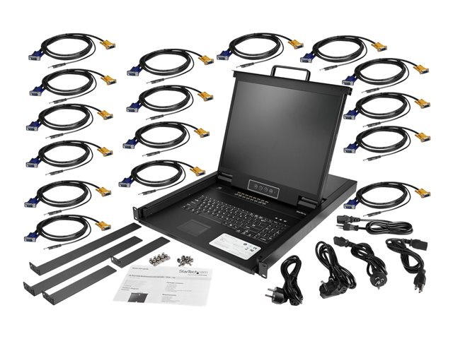 StarTech.com 16 Port Rackmount KVM Console with 6ft Cables, Integrated KVM Switch with 19" LCD Monitor, Fully Featured 1U LCD KVM Drawer- OSD KVM, Durable 50,000 MTBF, USB + VGA Support - 19in. LCD KVM Console (RKCONS1916K) - KVM-konsol med KVM switch - 16 porte - PS/2, USB - US - 19" - rackversion - 1280 x 1024 - 250 cd/m² - 1000:1 - VGA - sort - 1U RKCONS1916K