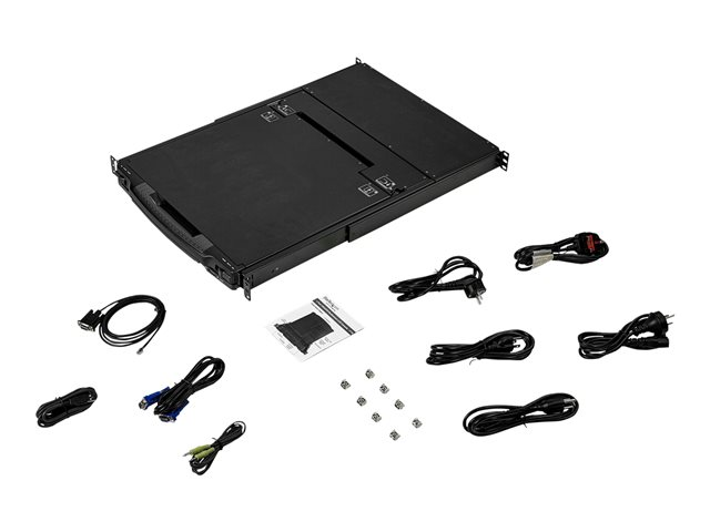 StarTech.com Dual Rail Rackmount KVM Console HD 1080p, Single Port DVI/VGA KVM with 17" LCD Monitor for Server Rack, Fully Featured 1U LCD KVM Drawer with Cables, USB Support, 44230 MTBF - Single Port Console (RKCOND17HD) - KVM-konsol med KVM switch - 1 porte - USB - 17.3" - rackversion - 1920 x 1080 Full HD (1080p) @ 60 Hz - 250 cd/m² - 650:1 - 8 ms - 2xDVI-D, 2xVGA - sort - 1U RKCOND17HD