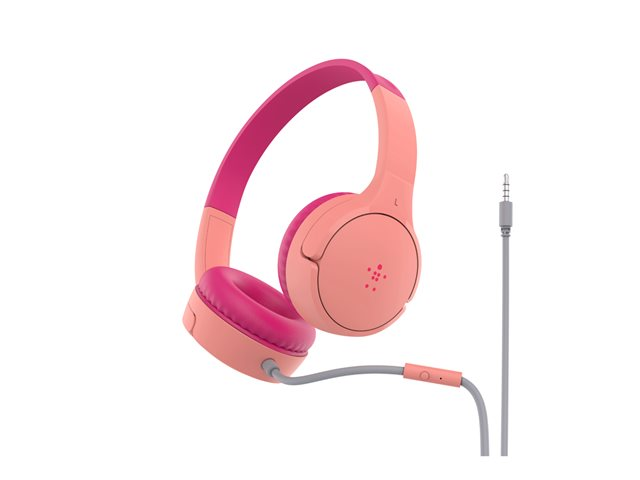 Belkin SoundForm Mini - Hovedtelefoner med mik. - på øret - kablet - 3,5 mm jackstik - pink