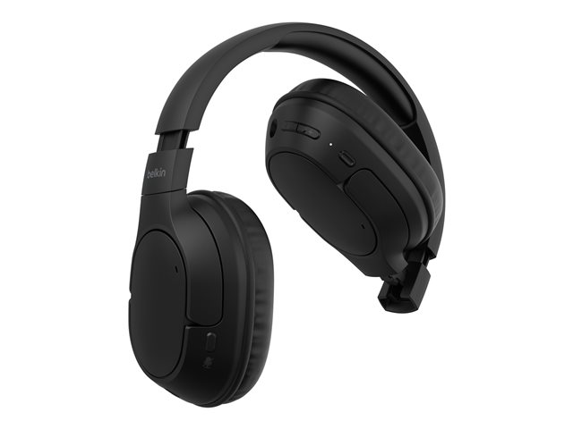 Belkin SoundForm Surround - Hovedtelefoner med mik. - fuld størrelse - Bluetooth - trådløs, kablet - USB-C, 3,5 mm jackstik - sort