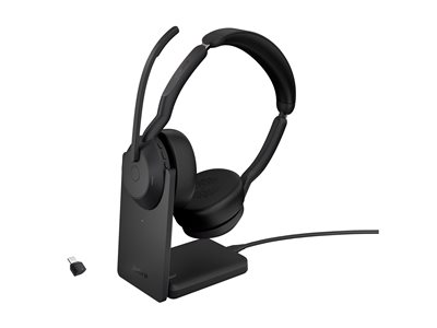 Jabra Evolve2 55 UC Stereo - Headset - på øret - Bluetooth - trådløs - aktiv støjfjerning - USB-C - sort - med opladningsstander - Zoom Certified, Cisco Webex Certified, Optimized for Microsoft Teams, Alcatel-Lucent Certified, Avaya Certified, Unify Certified, MFi Certified, Amazon Chime Certified 25599-989-889