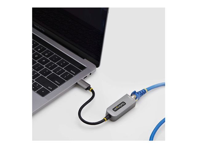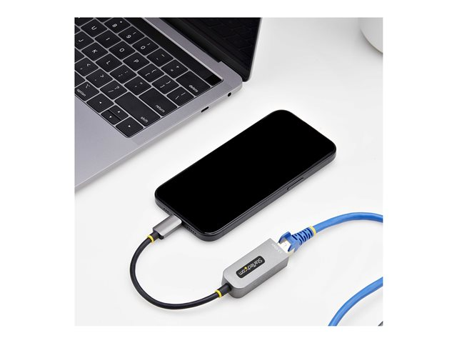 The 2.5GbE USB-C to Ethernet Adapter by StarTech.com provides a reliable and efficient way to connect to wired networks with ease. This adapter supports data transfer rates of up to 2.5 Gbps, making it suitable for high-speed Internet connections. Designed with an integrated USB-C cable that is 15.2 cm long, it is compact and easy to use, allowing for seamless connectivity with compatible devices. The device features an RJ-45 female connector, making it compatible with various Ethernet types, including 2.5GBase-T and Gigabit Ethernet.