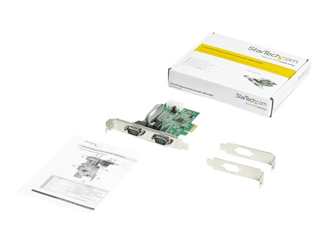 This adapter card lets you add two RS-232 serial ports to your computer through a PCIe slot, as if they were native serial ports. The dual port PCIe serial card enables you to interact with serial devices, such as card readers, printers, PIN pads, and modems. The card comes pre-configured with a full-profile bracket, and includes low-profile brackets, so installation is easy regardless of the case form factor.