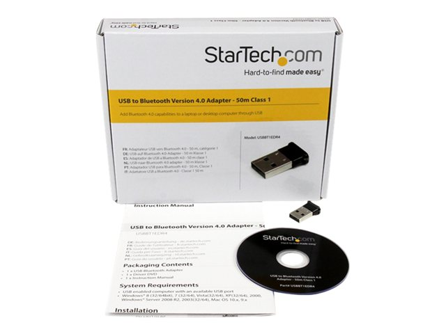 StarTech.com Bluetooth Adapter - Mini Bluetooth 4.0 USB Adapter - 50m/165ft Wireless Bluetooth Dongle - Smart Ready LE+EDR (USBBT1EDR4) - Netværksadapter - USB - Bluetooth 4.0 - Klasse 1 - sort
