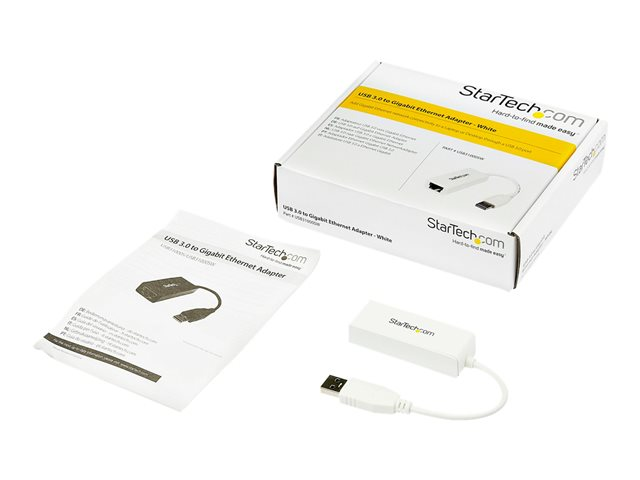 StarTech.com USB 3.0 to Gigabit Ethernet Network Adapter - 10/100/1000 NIC - USB to RJ45 LAN Adapter for PC Laptop or MacBook (USB31000SW) - Netværksadapter - USB 3.0 - Gigabit Ethernet - hvid USB31000SW