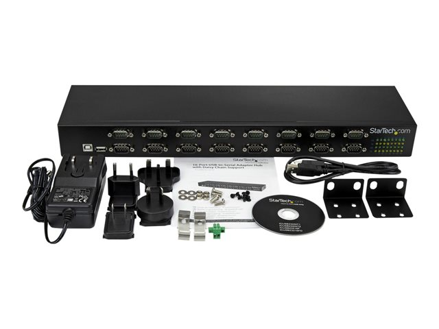 - 16-port USB to RS-232 hub for versatile device connectivity