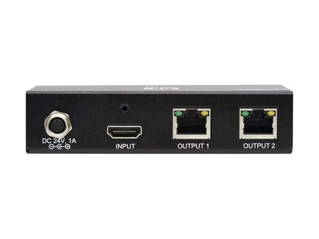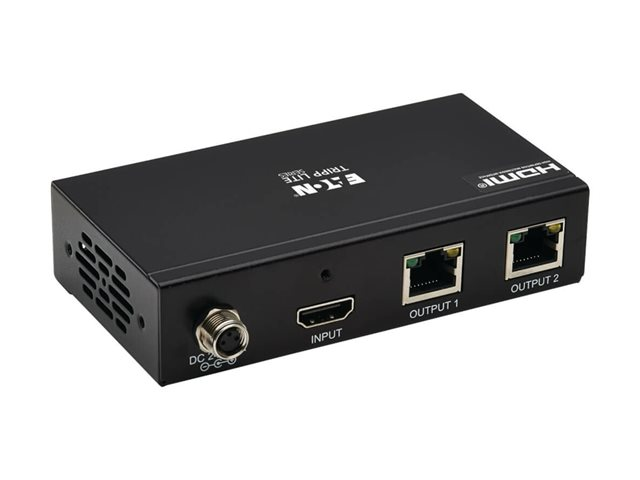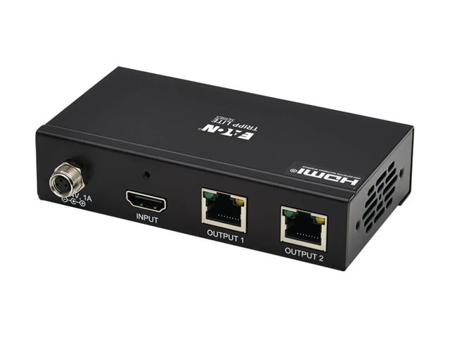 Elevate your audiovisual experience with the Eaton Tripp Lite Series 2-Port HDMI over Cat6 Splitter. This device is engineered to distribute high-definition video and audio over long distances, supporting resolutions up to 4K 60 Hz, HDR, and 4:4:4 chroma subsampling. With dual RJ-45 network outputs, it extends HDMI signals up to 230 ft. (70.1 m) over CAT 6 cables, making it perfect for large venues or digital signage applications. The splitter also boasts advanced audio features, including support for 7.1 channel audio, Dolby TrueHD, and LPCM, ensuring a rich and immersive sound to accompany the crisp visuals. Designed for versatility, it includes a comprehensive mounting kit for installation on walls, poles, or racks. Compliant with key standards such as FCC, RoHS, and TAA, and capable of operating in a wide range of environmental conditions, this splitter is a reliable solution for extending your HDMI signals while maintaining impeccable quality.