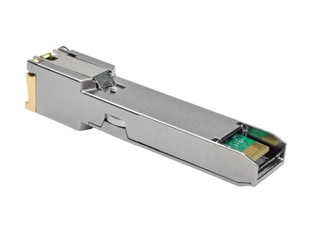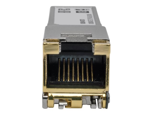 Eaton Tripp Lite Series introducerer Cisco GLC-T Compatible 1000Base-TX Copper RJ45 SFP Mini Transceiver, en Gigabit Ethernet-løsning, der er designet til overlegen netværksydelse. Dette transceivermodul er konstrueret til at understøtte både Cat5e- og Cat6-kabler, hvilket giver alsidige tilslutningsmuligheder. Med sit RJ-45-stik giver det en pålidelig kabelforbindelse til Ethernet 1000Base-T-netværk. Enheden skiller sig ud ved sin miljømæssige holdbarhed og fungerer effektivt på tværs af en bred vifte af temperaturer og fugtighedsniveauer, hvilket sikrer ensartet ydeevne under forskellige forhold. Derudover har den auto-uplink og hot swap-moduludskiftning, hvilket forenkler installations- og vedligeholdelsesprocesser. Dette transceivermodul er i overensstemmelse med MSA- og RoHS-standarderne og opfylder ikke kun branchens specifikationer for kompatibilitet, men overholder også miljømæssige sikkerhedsbestemmelser. Uanset om du opgraderer et eksisterende netværk eller opretter et nyt, tilbyder dette transceivermodul en blanding af ydeevne, pålidelighed og brugervenlighed.