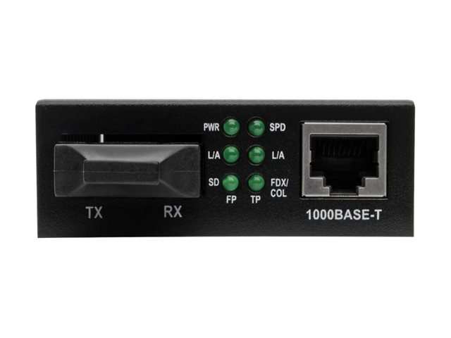 Eaton Tripp Lite Series Gigabit Multimode Fiber to Ethernet Media Converter er en højtydende netværksløsning, der er designet til at opfylde behovene hos moderne virksomheder og institutioner. Med sin evne til at understøtte Ethernet 10Base-T/100Base-TX/1000Base-T muliggør denne mediekonverter hurtige og pålidelige netværksforbindelser, hvilket sikrer problemfri dataoverførsel på tværs af din infrastruktur. Den har auto-uplink (auto MDI/MDI-X), fuld duplex-tilstand og halv duplex-tilstand, hvilket giver en alsidig ydeevne, der tilpasser sig dine netværkskrav. Enhedens robuste design gør, at den kan fungere inden for et bredt temperaturområde på 0 °C til 60 °C og en luftfugtighed på 5 - 90 % (ikke-kondenserende), hvilket gør den velegnet til en række forskellige miljøer. Derudover understreger dens overholdelse af Plug-and-Play- og RoHS-standarderne dens kvalitet og engagement i miljøansvar. Med en maksimal overførselsafstand på 550 m er den perfekt udstyret til at forbinde fjerntliggende områder på et campus eller i en bygning, hvilket forbedrer dit netværks rækkevidde og funktionalitet.