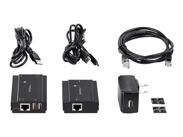 StarTech.com 4 Port USB 2.0 Extender Hub over Single CAT5e/CAT6 Ethernet Cable (RJ45), 330ft (100m), USB Extender Adapter, Externally Powered, 480 Mbps, Metal USB Extender Kit - Power/Link LEDs (USB2004EXT100) - USB-forlængerkabel - USB 2.0 - over CAT 5e/6 - op til 100 m USB2004EXT100