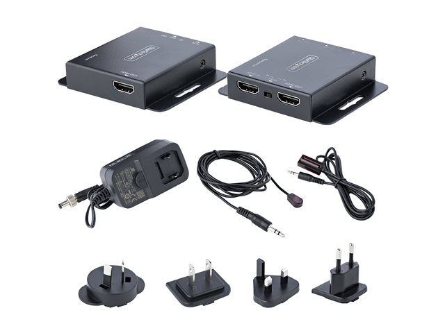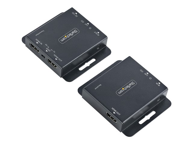 This HDMI extender over CAT6 lets you transmit a 4K 30 Hz HDMI audio video signal up to 230 ft (70 m) for 1080p resolutions. This converter kit includes both the transmitter and receiver for a complete end-to-end solution.