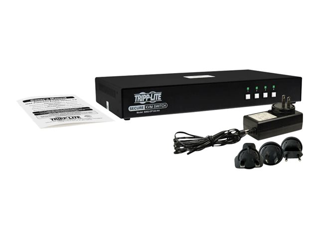 Oplev Tripp Lite Secure KVM Switch, en 4-Port, Single Head, DisplayPort til DisplayPort-løsning designet til at forbedre din datasikkerhed og skærmkvalitet. Denne KVM-switch understøtter 4K-opløsning og sikrer, at alle detaljer er skarpe og klare, uanset om du arbejder på dataintensive programmer eller nyder high-definition-medier. Med sine robuste tilslutningsmuligheder, herunder DisplayPort, USB 2.0 og lydindgange og -udgange, giver den problemfri integration i din eksisterende opsætning, så du nemt kan skifte mellem enheder.