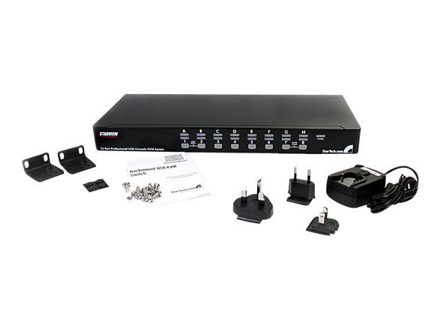 This 16 Port USB KVM Switch offers a dependable computer management tool that allows you to control up to 16 USB connected computers from one keyboard, mouse and monitor. The KVM switch offers maximum control, allowing you to switch computers using hotkey commands or front panel push-buttons, and offers the added configurability and convenience of an On Screen Display. A suitable addition to server room operations, the 16 port switch can be rackmounted into 1U of cabinet space, and can be cascaded with multiple KVM switches to deliver control of up to 136 computers from this single switch.