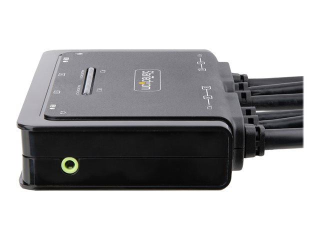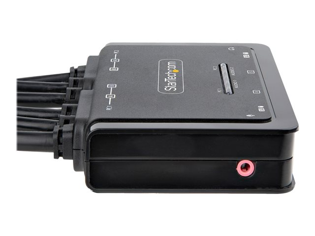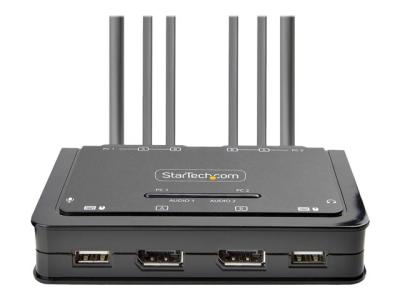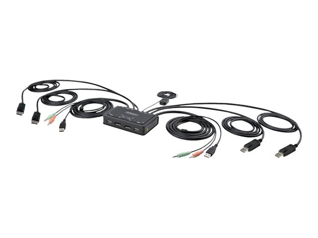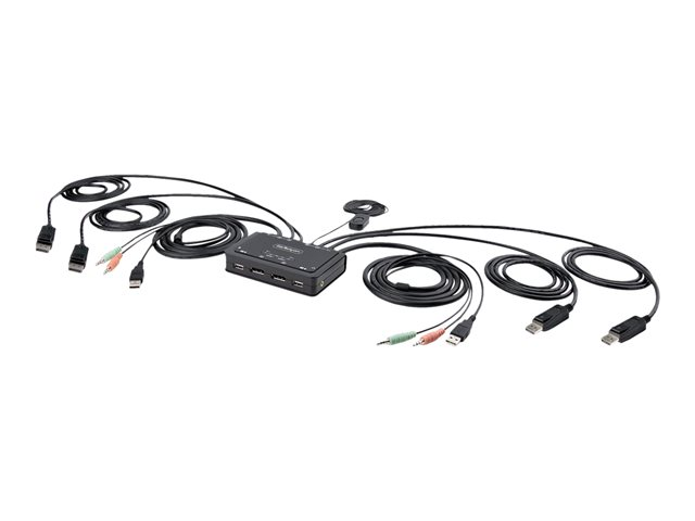 StarTech.com 2-Port Dual-Monitor DisplayPort Cable KVM Switch, 4K 60Hz, Compact KVM with 5ft/1.5m USB-A/DisplayPort/Audio Integrated Cables, Bus Powered - Remote Push Button/Hotkey Switching (C2-DD46-UA2-CBL-KVM) - KVM / audio / USB switch - kompakt - 2 x KVM / audio / USB - 1 lokalbruger - desktop