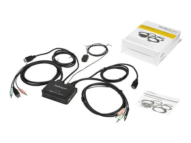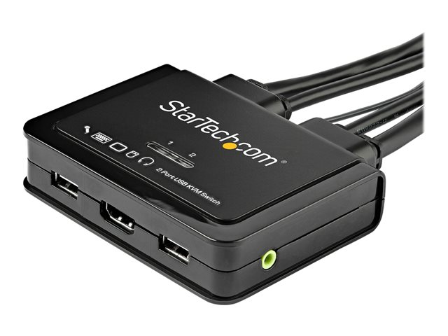 StarTech.com 2 Port HDMI KVM Switch, 4K 60Hz, Compact Dual Port UHD/Ultra HD USB Desktop KVM Switch with Integrated 4ft Cables & Audio, Bus Powered & Remote Switching, MacBook ThinkPad - 4K KVM Switch w/ Audio (SV211HDUA4K) - KVM / audio-switch - 2 x KVM / audio - 1 lokalbruger - desktop SV211HDUA4K