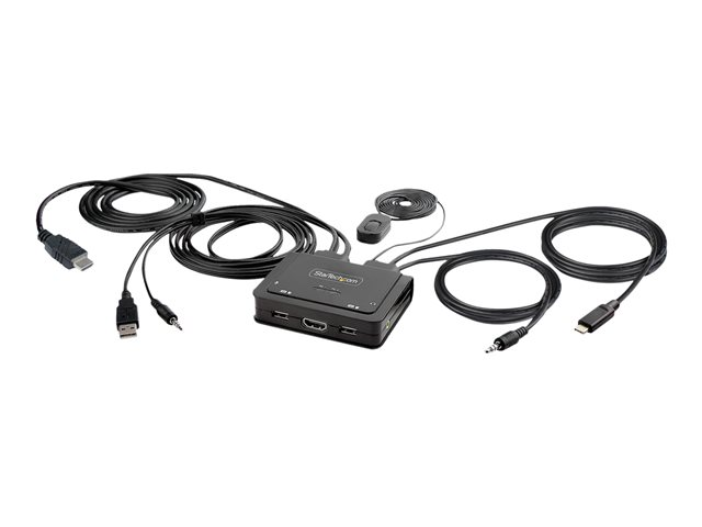 StarTech.com 2-Port Hybrid USB-C HDMI Cable KVM Switch, 4K 60Hz, Compact KVM with 6ft/1.8m USB-A/HDMI/Audio & 4ft/1.2m USB-C Integrated Host Cables, Bus Powered - Remote Push Button/Hotkey Switching (C2-H46-UAC-CBL-KVM) - KVM / audio / USB switch - kompakt - 2 x KVM / audio / USB - 1 lokalbruger - desktop