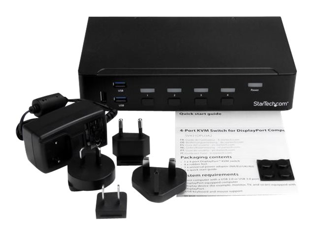 StarTech.com 4 Port DisplayPort KVM Switch - DP KVM Switch with Audio and Built-in USB 3.0 Hub for Peripherals - 4K 30Hz (SV431DPU3A2) - KVM / USB switch - 4 x KVM / audio / USB + 3 x SuperSpeed USB - 1 lokalbruger - monterbar på stativ - AC 120/230 V / DC 9 - 12 V - for P/N: SV431RACK SV431DPU3A2