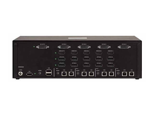 The StarTech.com CK4-HPD404C is designed for seamless KVM switching, audio, and USB connectivity, facilitating efficient workflow management. This compact desktop solution supports quad display configurations and is equipped with features like Common Access Card (CAC) reader support and anti-tampering protection, making it ideal for secure environments. With multiple input and output options, including DVI, HDMI, and DisplayPort connections, this device allows users to operate multiple devices with ease.