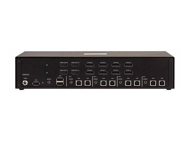 Featuring a user-friendly design with push-button controls and integrated status indicators for each port, the CK4-PM204C simplifies managing multiple devices. It supports essential connections, including HDMI and DisplayPort inputs, as well as audio input and output. Compliant with standards such as FCC, RoHS, and WEEE, this KVM switch is secure and environmentally friendly, ensuring compatibility and performance benchmarks are met.