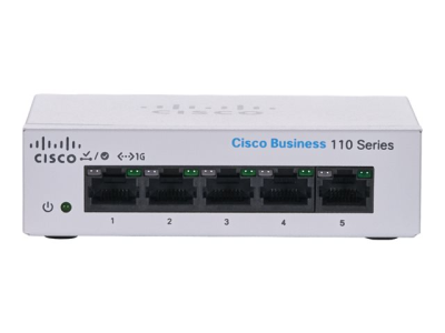 Cisco Business 110 Series 110-5T-D - Switch - ikke administreret - 5 x 10/100/1000 - monterbar på stativ, desktop, væg-monterbar - DC strøm